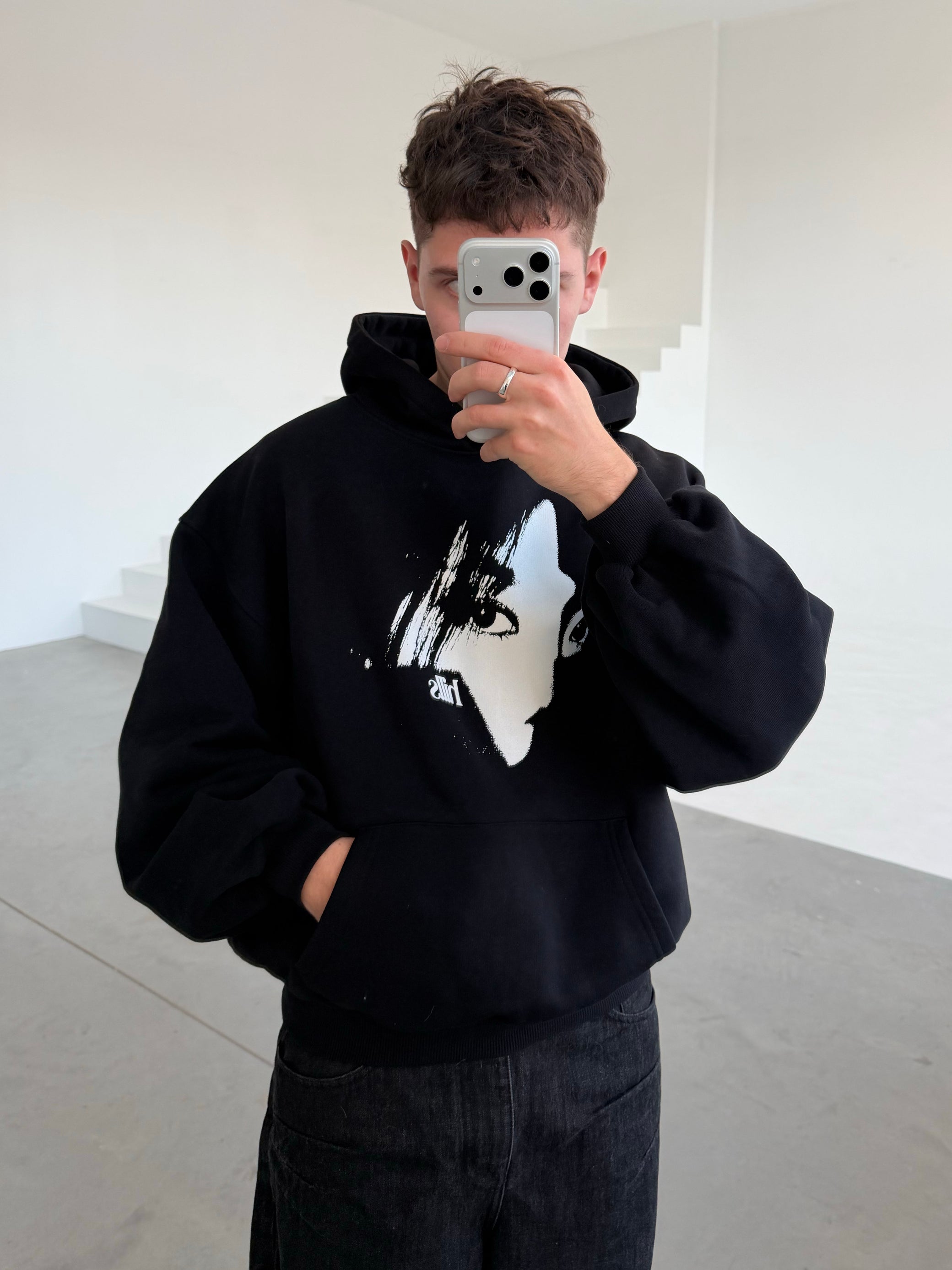 Our Face Hoodie is crafted from very soft and comfy brushed cotton. It follows our signature boxy fit with tight hem and slightly cropped length. The hoodie has dropped shoulders and very wide sleeves with ribbed cuffs. The large hood ensures maximum comfort. The hoodie's proportions are carefully adjusted to complement every body type, which makes hoodie look perfect on everyone.