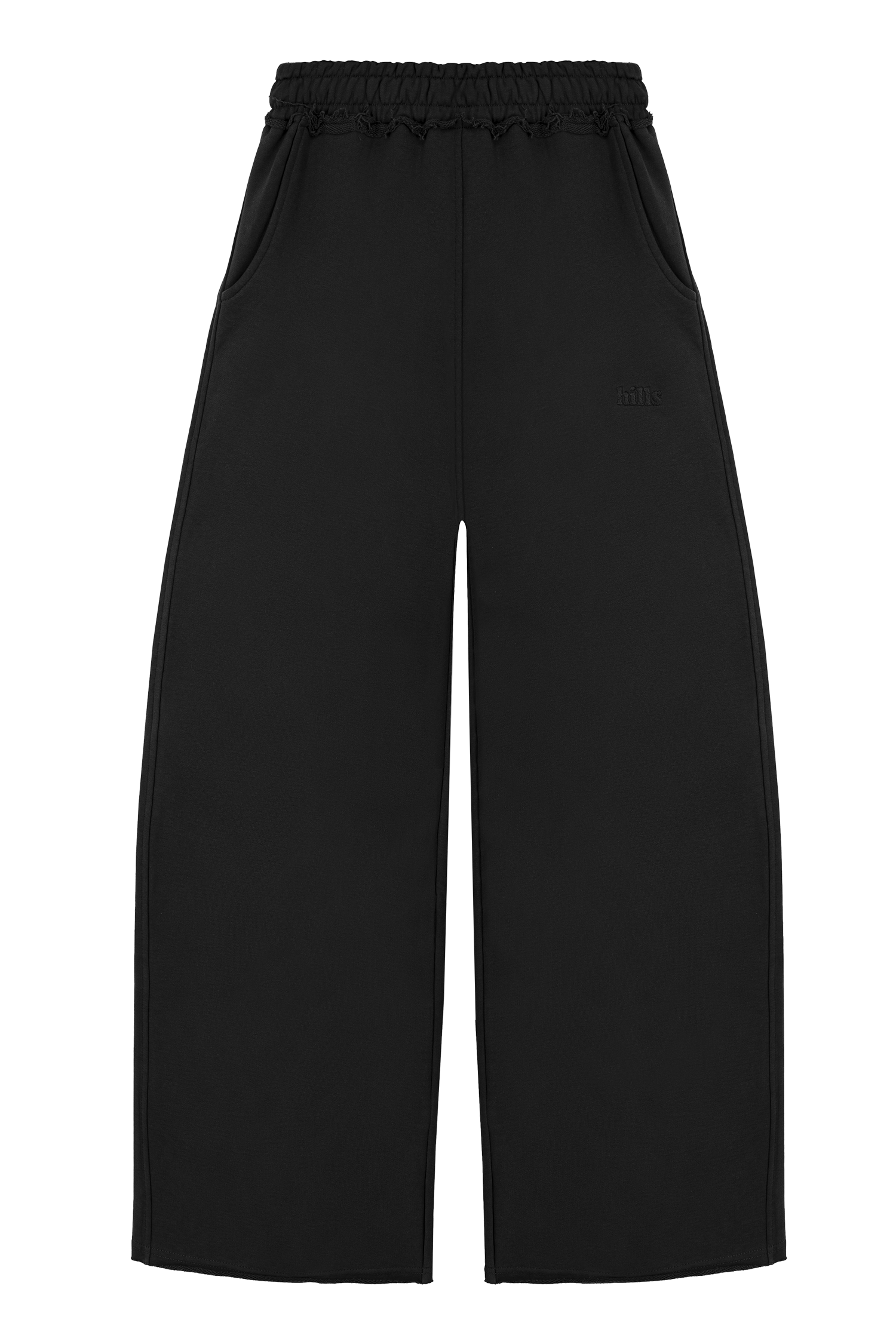Black, cotton basic sweatpants with wide leg and hills® embroidery on the front.