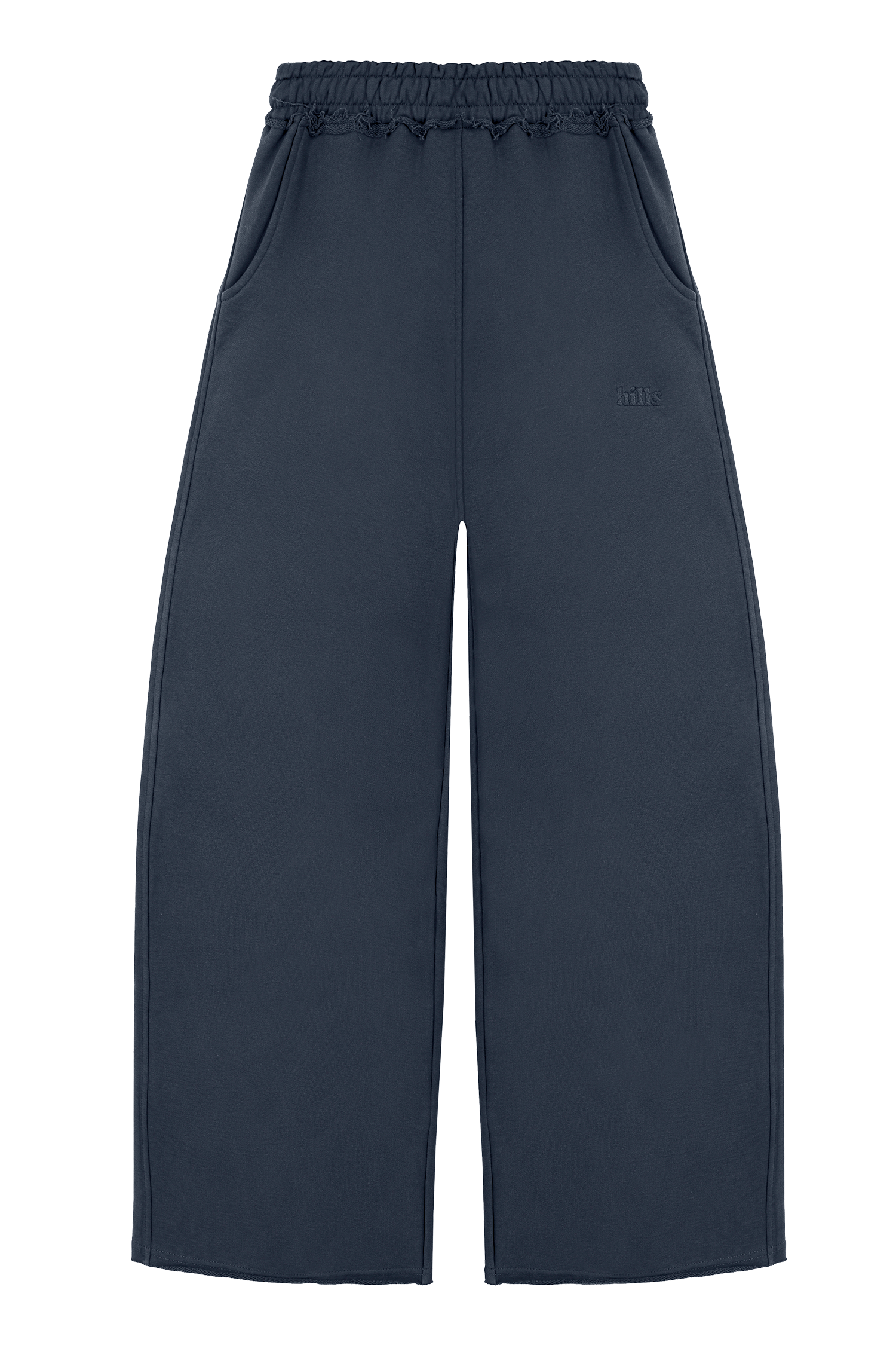 Navy, cotton basic sweatpants with wide leg and hills® embroidery on the front.