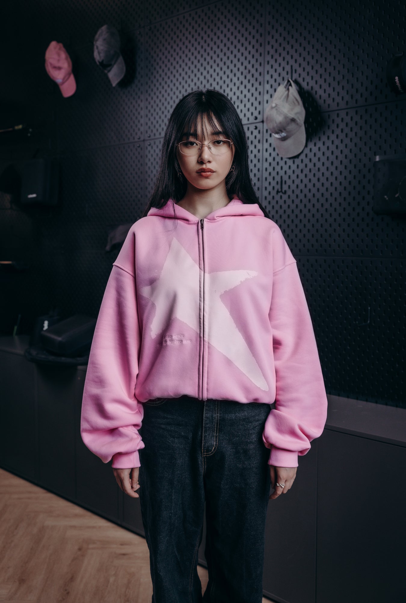 Our Star Zip Hoodies are crafted from very soft and comfy brushed cotton. It follows our signature boxy fit with tight hem and slightly cropped length. The hoodie has dropped shoulders and very wide sleeves with ribbed cuffs. The large hood ensures maximum comfort. The hoodie's proportions are carefully adjusted to complement every body type, which makes hoodie look perfect on everyone.