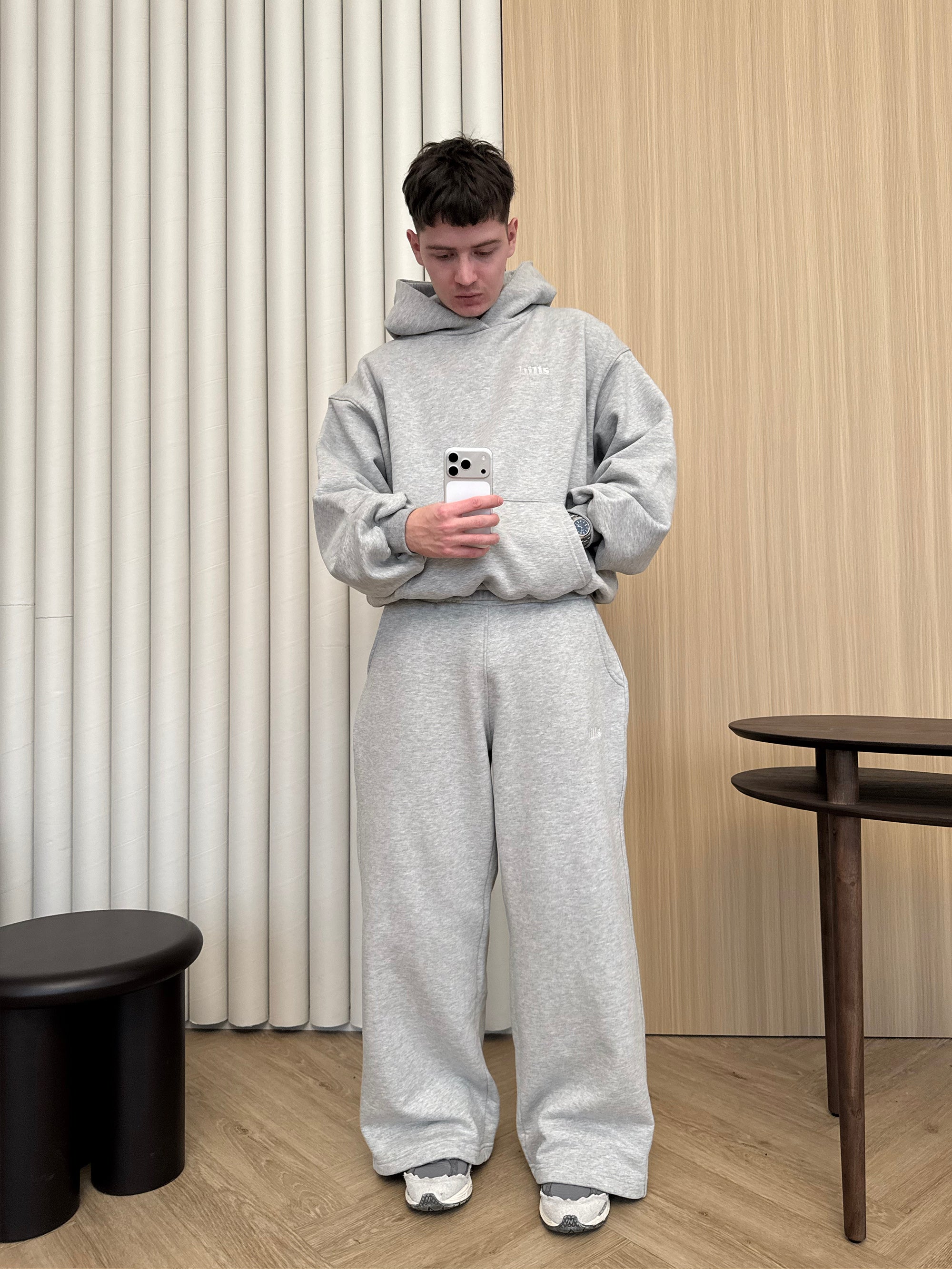 Nasze Basic Hoodies są wykonane z niezwykle miękkiej i przyjemnej w dotyku bawełny drapanej. Bluza ma nasz autorski krój boxy z wąskim ściągaczem i delikatnie skróconą długością. Obniżona linia ramion oraz bardzo szerokie rękawy wykończone prążkowanymi ściągaczami nadają jej unikatowy puffy look. Duży kaptur zapewnia maksymalny komfort podczas noszenia. Proporcje bluzy są starannie dopracowane tak, aby pasowała ona na każdą sylwetkę.