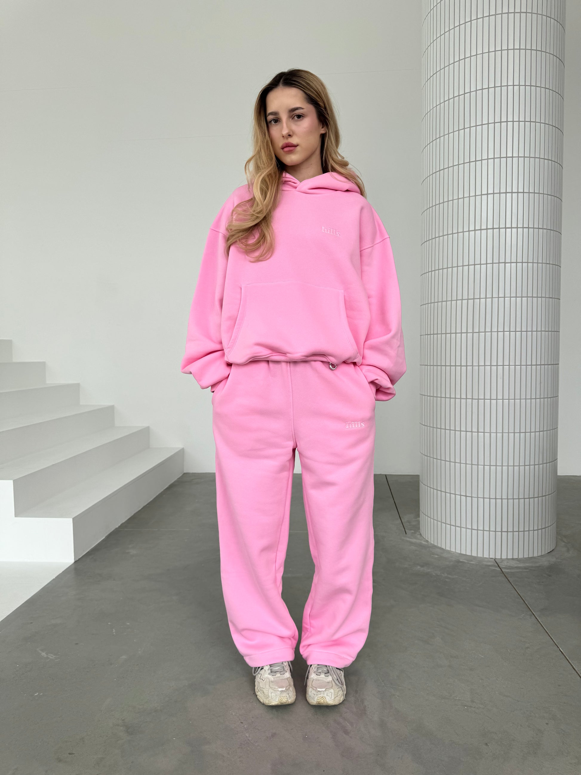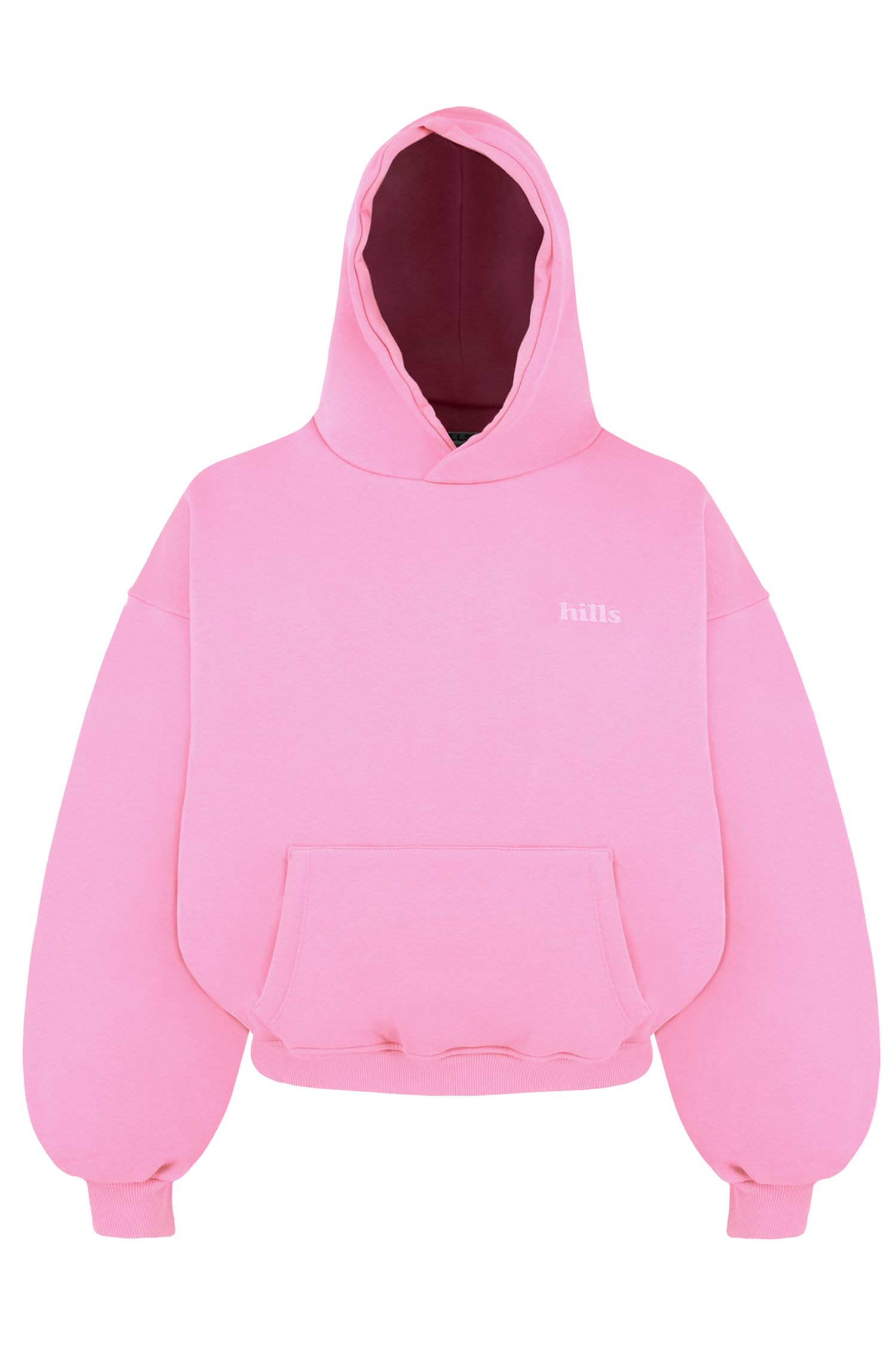 Różowa, bawełniana bluza basic o kroju boxy z haftem hills® na froncie.