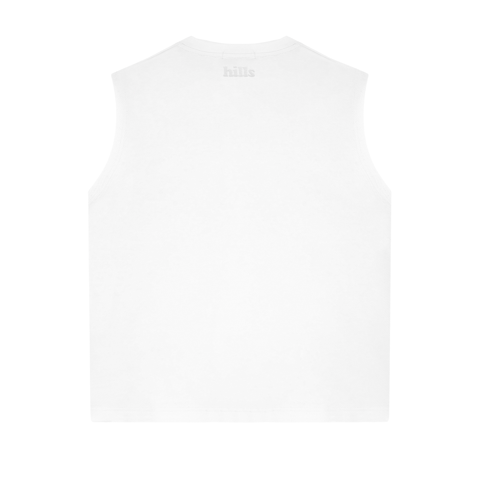 Biały, bawełniany top basic o kroju boxy z haftem hills® na karku.