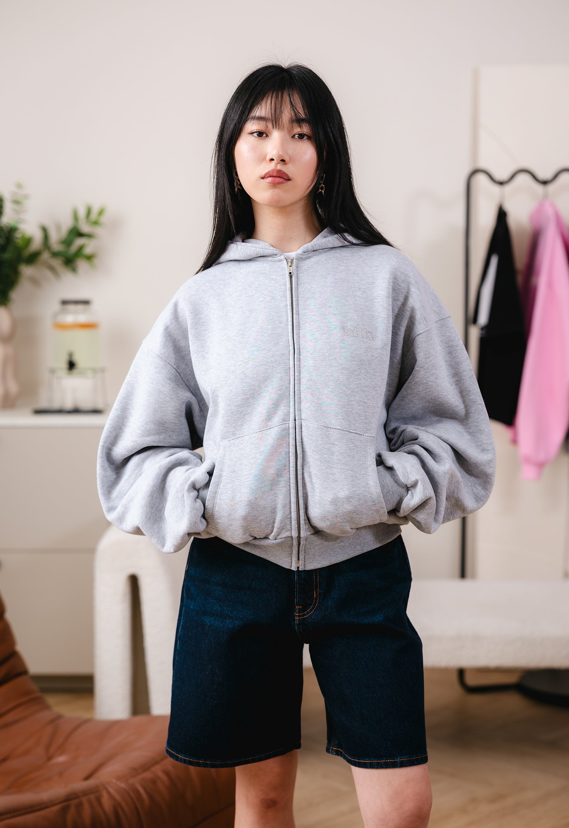 Nasze Basic Zip Hoodies są wykonane z niezwykle miękkiej i przyjemnej w dotyku bawełny drapanej. Bluza ma nasz autorski krój boxy z wąskim ściągaczem i delikatnie skróconą długością. Obniżona linia ramion oraz bardzo szerokie rękawy wykończone prążkowanymi ściągaczami nadają jej unikatowy puffy look. Duży kaptur zapewnia maksymalny komfort podczas noszenia. Proporcje bluzy są starannie dopracowane tak, aby pasowała ona na każdą sylwetkę.