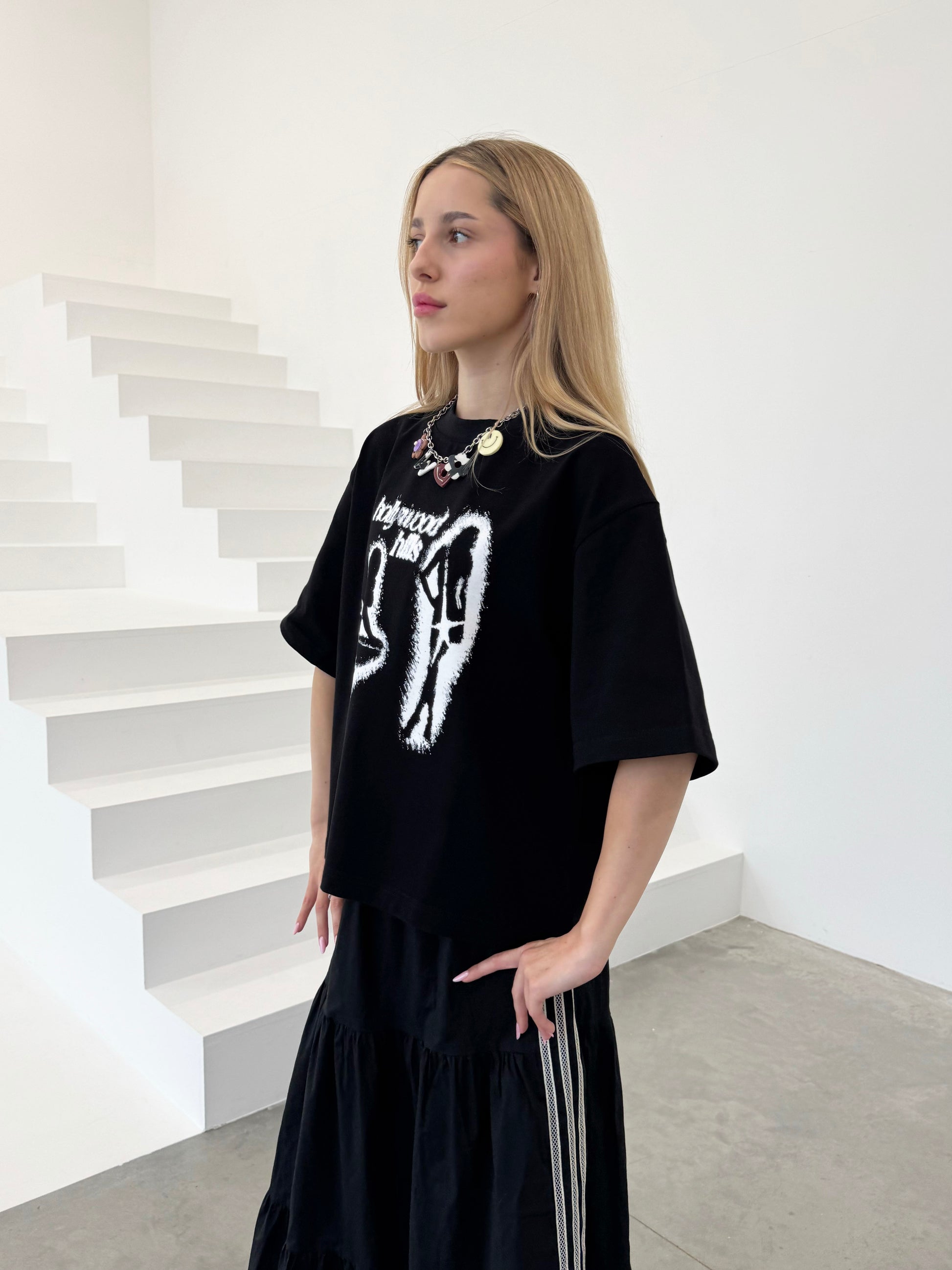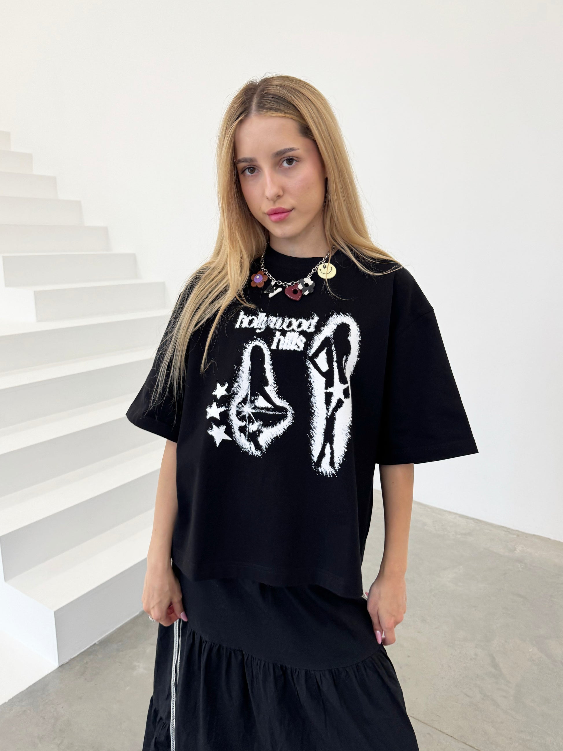 Nadruk Girls nawiązuje do lat 90's we wzgórzach Hollywood. To była era pełna pięknych kobiet, charyzmy i imprez, których nikt nie był w stanie zliczyć. Każdy film miał swoją gwiazdę. Każda willa w Hollywood Hills miała ją również. Produkt jest w całości wykonany w Polsce z najwyższej jakości certyfikowanej dzianiny bawełnianej, stworzonej specjalnie na nasze zamówienie. Materiał został wzbogacony o zaawansowane procesy uszlachetniania, które zwiększają trwałość, zapobiegają mechaceniu i utrzymują niezwykłą miękkość nawet po wielu praniach.