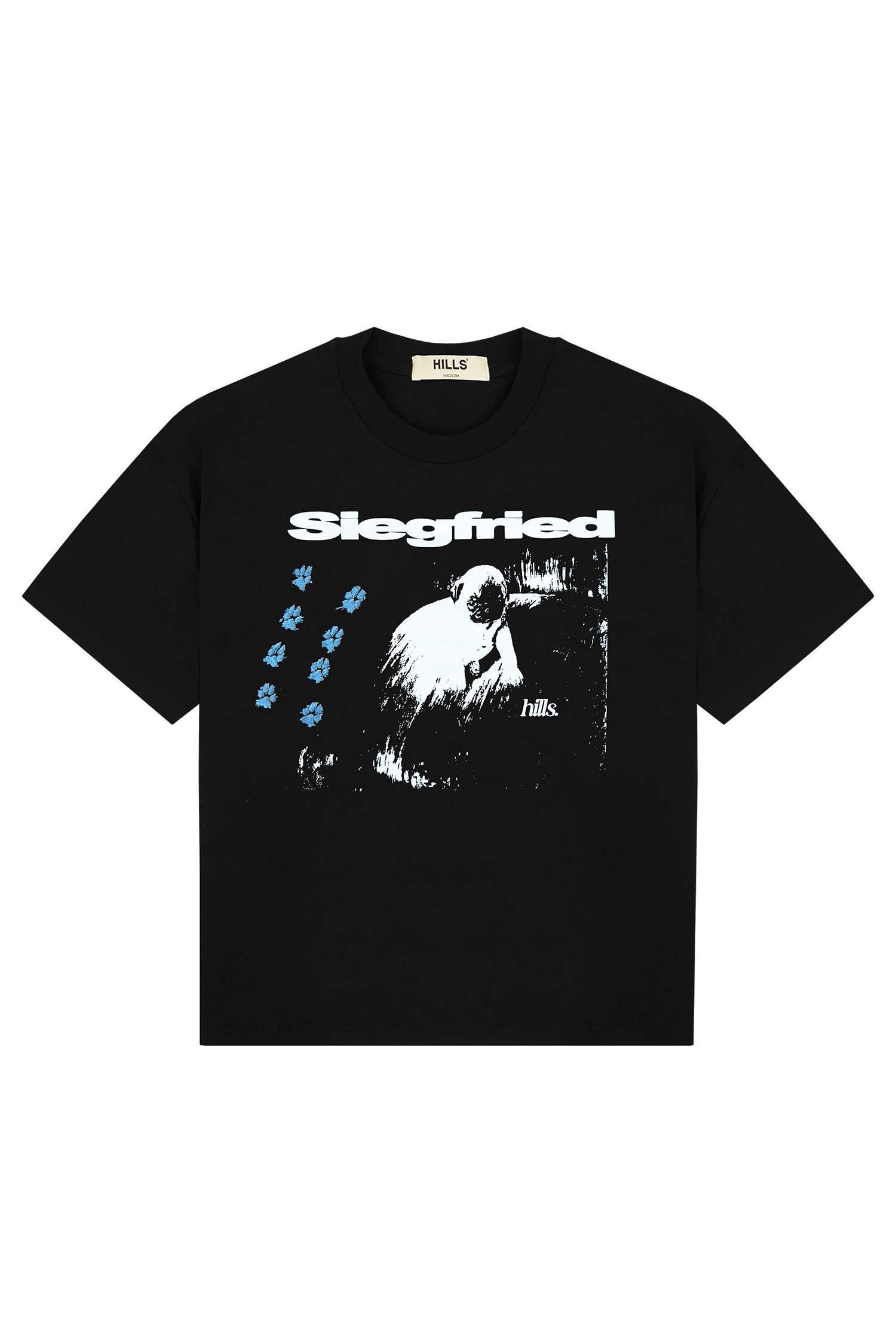 Grafika na froncie to nasza interpretacja obrazu Siegfried autorstwa Thomasa Theodora Heine z 1921 roku, przeniesiona w surowy, postarzany styl. Haftowane detale w formie łap zostały stworzone na podstawie skanu mopsa właściciela marki Hills, co nadaje bluzie unikalny, osobisty charakter.